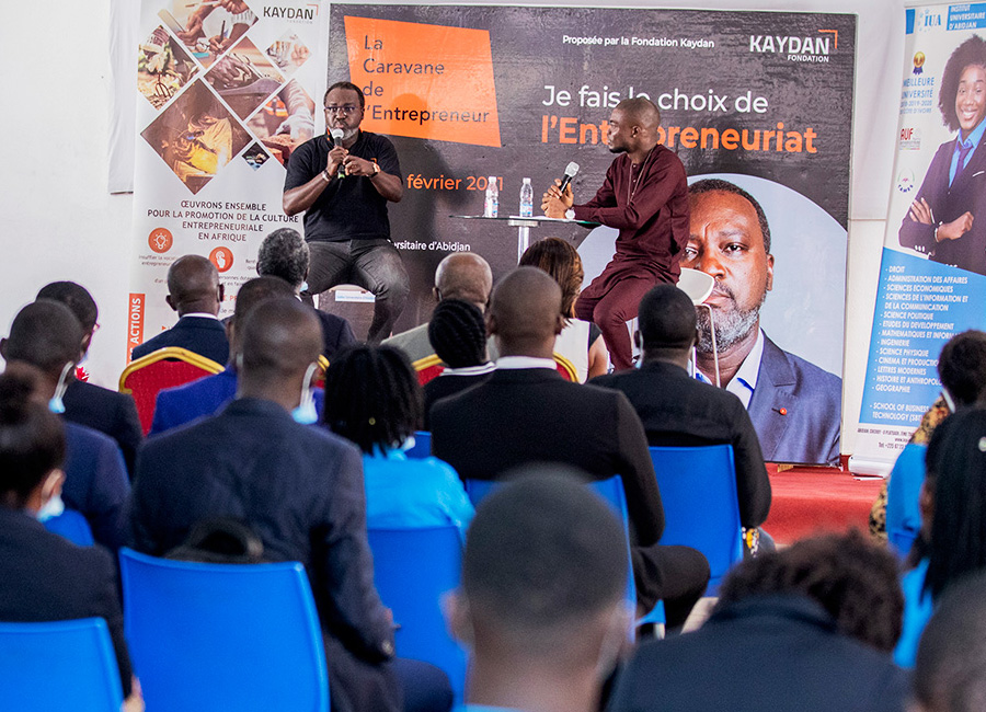 La Fondation Kaydan, initiative de plusieurs entrepreneurs ivoiriens s’est alors donnée pour mission de contribuer au processus de développement d’une véritable culture entrepreneuriale en Afrique et particulièrement en Côte d’Ivoire. A travers nos actions, nous mettons en avant les parcours des entrepreneurs africains confirmés ou débutants qui partagent leurs expériences, leurs succès, leurs échecs afin de susciter de nombreuses vocations.